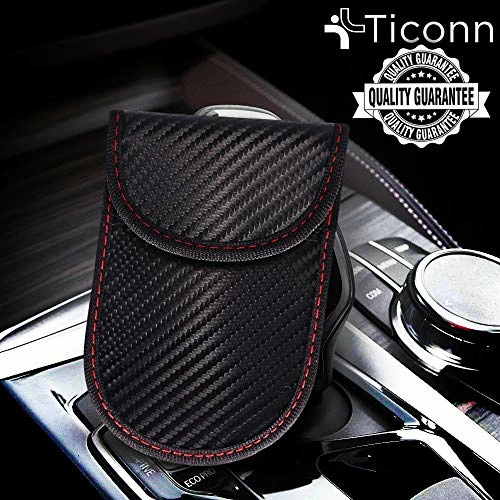 - ✔️【PREMIUM QUALITY】 TICONN faraday bag is constructed with premium carbon fiber textured material and two-layers of shielding materials packed in a gift box. It provides signal blocking functions as well as a luxurious fashionable appurtenance