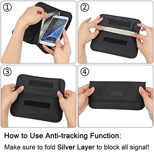 - Block Cell Phone Signal – If you don’t want to answer the phone, you can put the phone in the silver layer pocket of the bag and close it, then the phone will be disconnected; this bag can also block Cell Phone GPS Signal to prevent tracking, protect your privacy