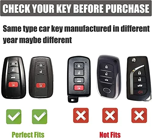 - 【Fit Model】: Key fob cover is compatible for Toyota 2019-2022 RAV4, 2018-2022 Camry, 2020-2022 Highlander, 2019-2022 Corolla, 2019-2022Avalon, 2017-2022C-HR, 2017-2022 Prius, 2018-2022 GT86 , 3 and 4 buttons key.. ***【Note】DOUBLE CHECK the appearance of the smart key fob referring to the 2nd picture.