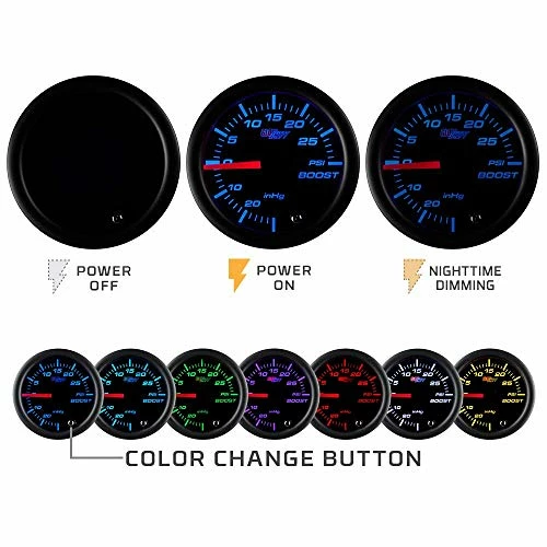 I purchased four of these various gauges and they’re worth every penny. I really like the customizing color capability. They fit perfectly in the GlowShift Pillar Pod too. Instructions were very simple and easy to follow. Customer support was also extremely helpful as I had to contact them for the following reason….After installing all the gauges and testing them I could not get the gauges to change colors. Also, on two of the four gauges the button for changing colors would not depress. Technical support stated that the buttons would not depress because I turned/adjusted the gauges from the outside bezel ring, which turns the bezel ring just slightly and jams the button. As instructed I pulled the gauges out of the pod just enough so I could grab the gauge from the main body and turn it to align as need and turn the bezel back to release the pressure from the button. The buttons then worked properly but the colors still did not change due to the second reason stated by tech support. The instructions inform the user to use a 3 amp fuse if wiring directly to the battery such as I did. Instead of running 4 lines and 4 fuses I ran one main line (fused) from the battery and into the pod. I then tied each gauge into the main line. This proved to be another problem in proper operation since the 3 amp fuse was not enough for all 4 gauges. I replaced the 3 amp fuse with a 7.5 amp and everything works great. It would have been nice to have this information about the bezel ring and wiring method added to the sheet instructions but the tech support was great.