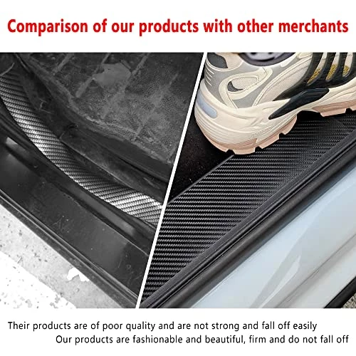 - Sport stylish:This car door sill protector has a shiny black carbon fiber texture with a stylish and unique logo, a variety of styles to choose from to protect the car threshold while showing sport fashionable, improve the grade of your car’s interior.