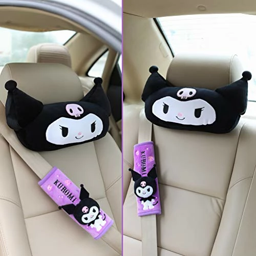 - ????【Best Gifts】:Suitable for car anime lovers party decoration, best gift for friends, children, lovers, family, Kuromi lovers. Soft cute girl heart cartoon little devil rabbit car headrest car pillow neck pillow shoulder guard seat belt cover car accessories.