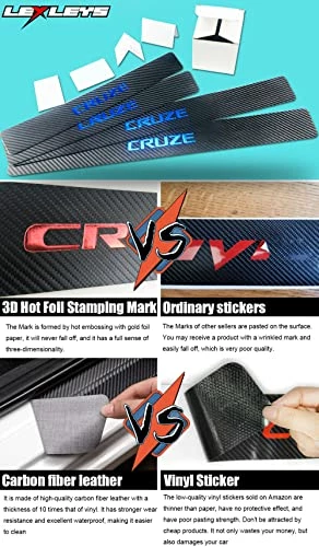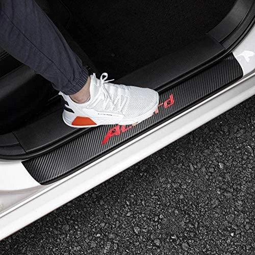 - 【Material】: Made of premium leater in carbon fiber look, and high-performance adhesive is used on the back side to against glue remains on the door sill after a certain period of time.