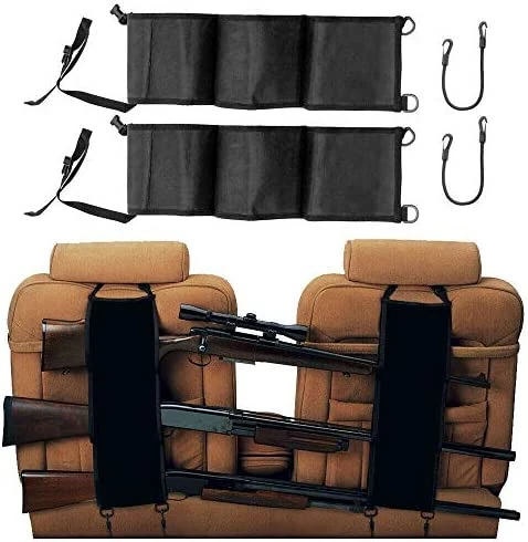 1.Easily hangs across seat back and holds up to three rifles or shot guns