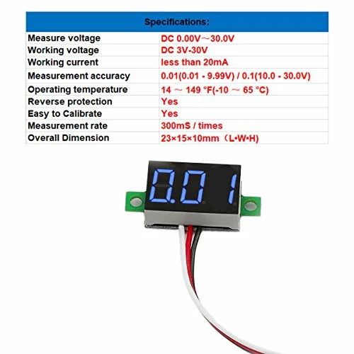 - This is Three-Wire Voltmeter. Three-Wire connection enable the Voltage Test Rang from 0.00 to 30V. (Two-wire meters cannot measure the voltage that is below 3V);