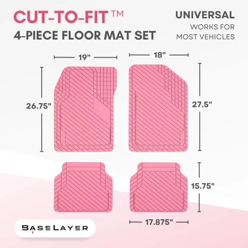 - DURABLE MATERIAL INTERIOR CAR MATS – The proprietary rubber material for this floor mat set provides good traction and stability (will not warp or slip) while the thickened cross-sections in high wear zones increase durability. No matter how extreme the weather or mess is, it is no match for these car mats. BaseLayer is the brand to trust, 100% heavy-duty, 100% recyclable, including a multi-year warranty. Includes a set of 4 floor mats, 2 mats for the front and 2 mats for the rear of the car.