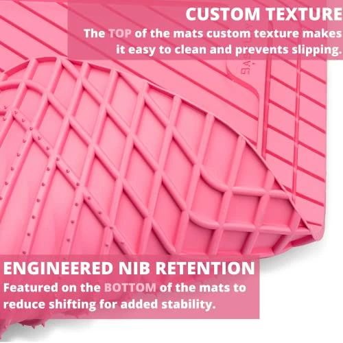 - NO SLIPS, NO ADHESIVES – We created a car floor mat set that doesn’t require adhesives, keeping the surface of your car floors smooth yet stable. Each mat is engineered with retention nib features on the bottom of the mats for added stability and the stylized textured finish on the top offers a non-skid surface for added traction. These floor liners will not move around when you and your family or friends load and unload from your car, truck, or SUV.