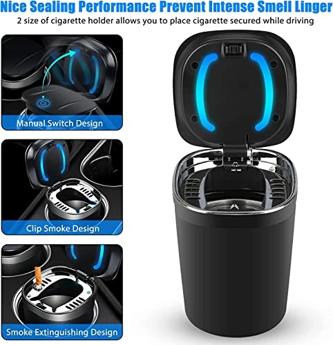 - 【Smokeless Lid】The special automatic sealing cover can prevent the smoke and odor from spreading in your car, keeping the car fresh.