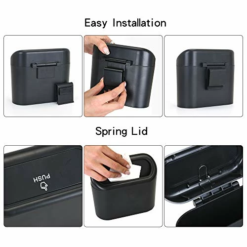 - SPRING LID-The self-leveling spring lid keeps your trash covered and out of sight; After each use, the lid will swing gently to close and hide the collected garbage to effectively prevent odor; Easily empty the bin with the wide opening.