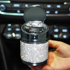 Wholesale ???? Portable Auto Car Cigarette Ashtray Ash Bling Crystal Smokeless Stand Cylinder Cup Holders,Silver ✨