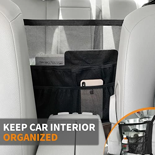 - PROTECTIVE BARRIER: When driving fast or on the jolt roads, this mesh car organizer in front seat can not only keep your items in the car storage stay in place but also serve as a barrier to stop pets from jumping forward. Less distraction, more concentration when driving.