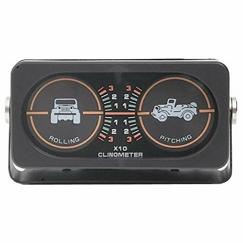 Rampage Universal Clinometer helps judge, and avoid, your rollover point. It has a two gauges design that offers side-by-side angle as it relates to the horizon and front-to-back angle readings. Graphic readouts show precise angle of tilt in degrees. Gauges illuminated for nighttime off-roading. Features a Jeep CJ graphic..