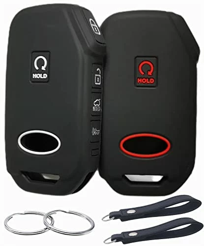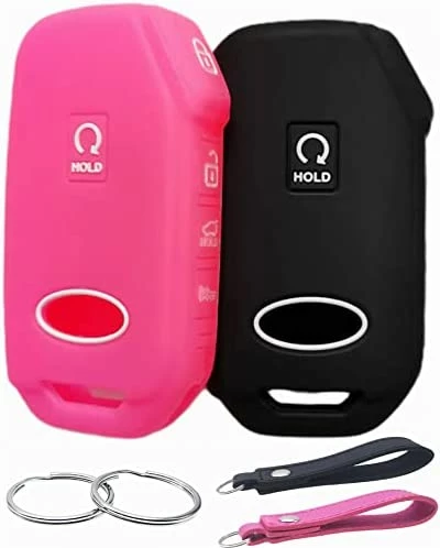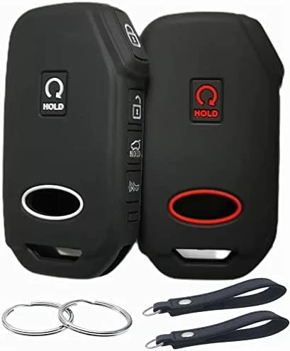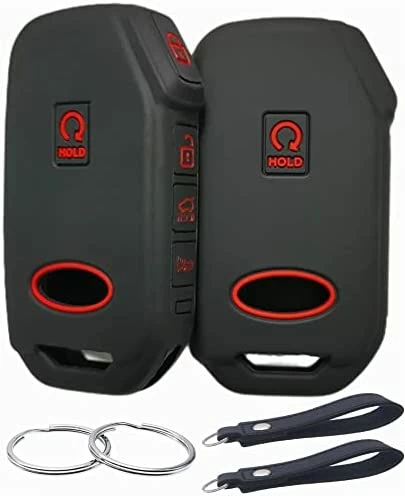 - Package Include: 1 Black with white buttons key Cover, 1 Black with red buttons key Cover and 2 304 stainless steel keyrings and 2 PU leather rope