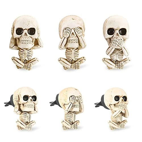 - ????????What You Will Get: Cute skull car interior accessories set for women men included 3pcs classic see, hear, speak no evil skulls stuff, a cool twist on the classic skull. The goth and hippie skull ornament is a special collection things for any skeleton statue lover. 2.36*1.2inch is suitable for most automotive vent as car essentials decorations charm . this car gadgets is also a funny car travel accessories for long trips.