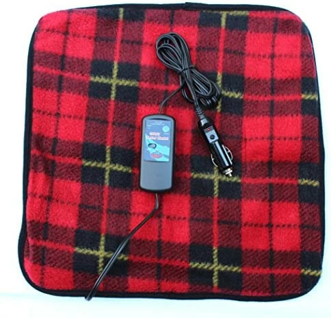 The Car Cozy 2 Heated Mini Travel Blanket is the ideal travel companion for all weather conditions. The 16″ x 16″ size is ideal for keeping your lap, hands and feet comfortably warm. Simply plug the 7’ long fused plug into any 12-volt power outlet and the mini-blanket warms quickly to provide comfort and warmth to any passenger. Features include a patented 30- or 45-minute timer with automatic shut-off, a reset button and automatic temperature control. LED’s on the plug and timer indicate the power is on. The mini-blanket is made of 100% high-quality, super-soft polyester fleece. Great for those frigid mornings or keeping children and other passengers comfortable on long road trips. Colors: Navy, Red Plaid or Black/White Plaid 90 Day Ltd. Voltage: 12 volts Wattage: 12 watts Amp Draw: 1 amp NOTE: The mini-blanket is not intended to be sat upon and should not be used folded or bunched.