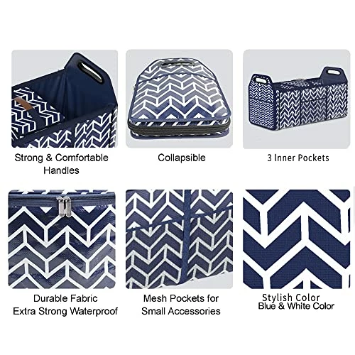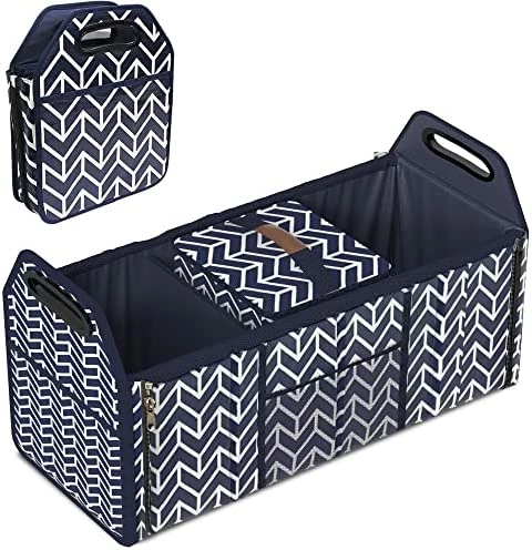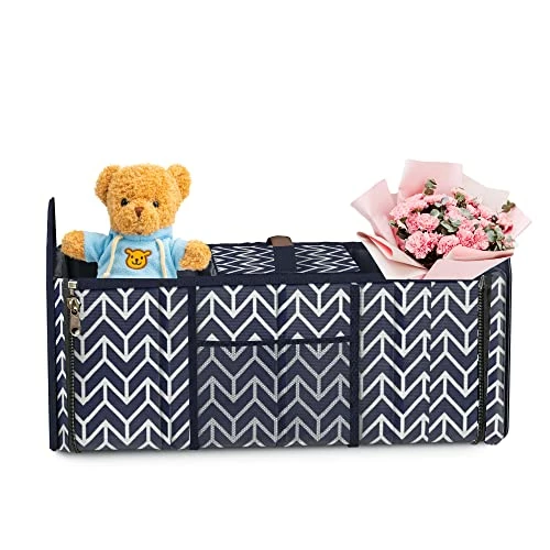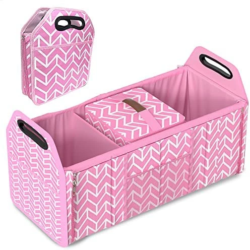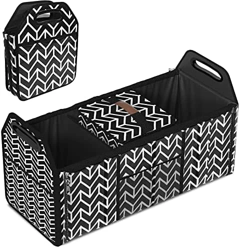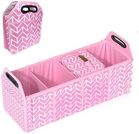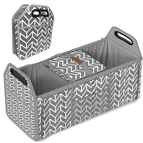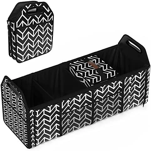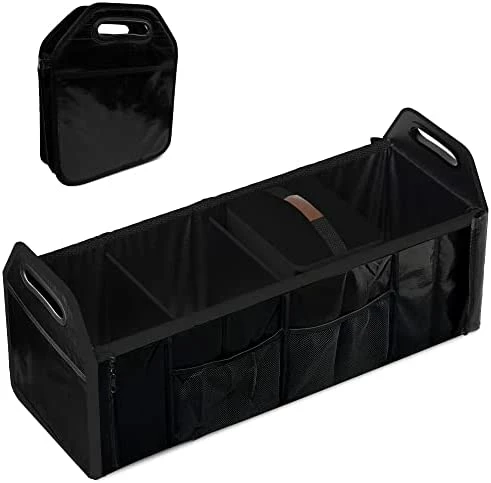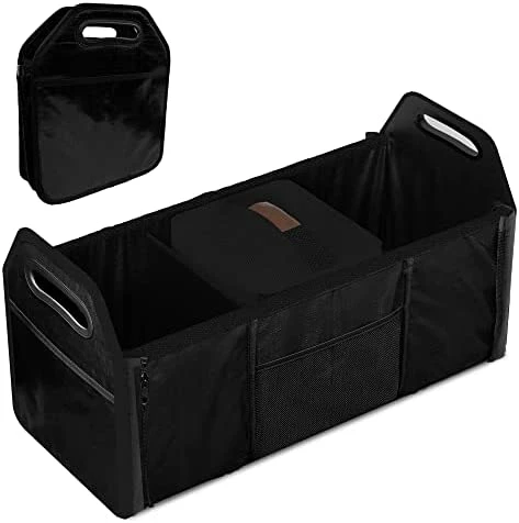 - Wide Application – With adjustment length and foldable compartments, this cargo tote is suitable to use at home or put it in your vehicle. Convenient organization and storage for drinks, food, groceries, small electronics, tools, sporting goods, cleaning supplies, emergency equipment and small household items. It’s also very portable that with handles for you easily to take it out for picnic or camping.