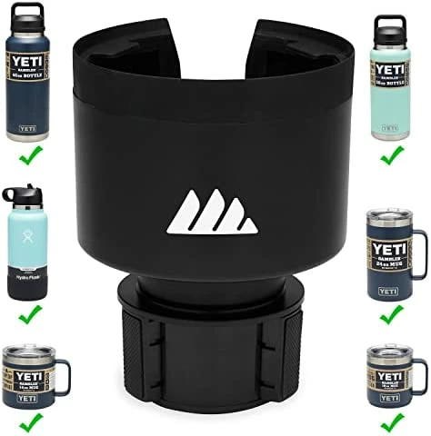 - TRAVEL YOUR WAY: Travel with ease & comfort. The Ultimate Expander cup holder installs into your vehicle’s cup holder in just seconds and holds your water bottle, thermos, or mug in a firm, snug fit with 3 rubber tabs for oversized bottles. Travel with your version of YETI, RTIC, Nalgene, Hydro Flask, CamelBak, and more.