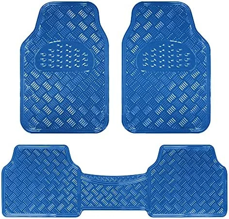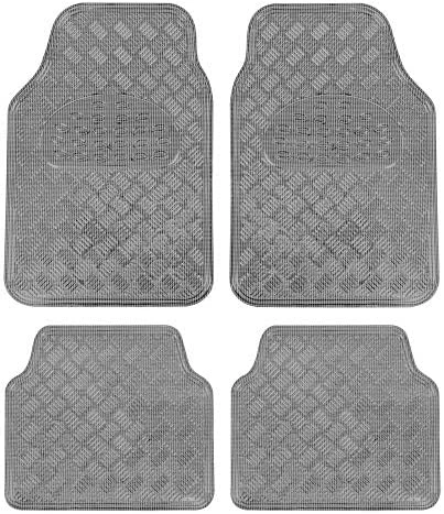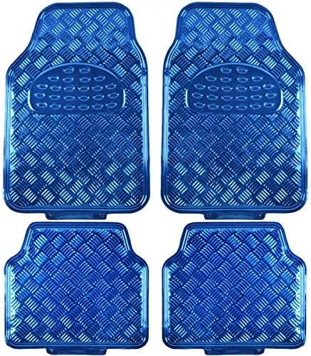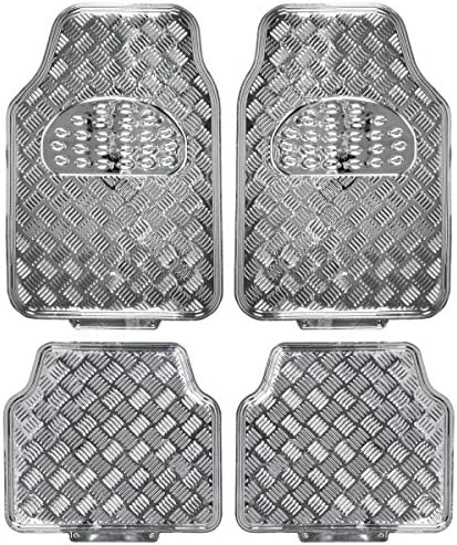 - Set of 4 mats for full coverage restyle your vehicle with new metallic diamond plate mats. Durable vinyl with anti color-fade scratch resistant finish. Protects original carpet against spills, stains, mud and debris