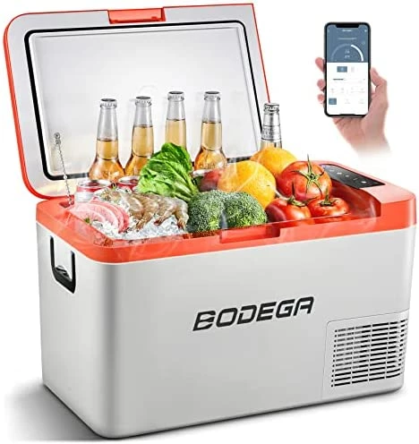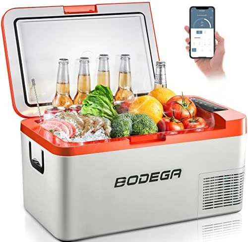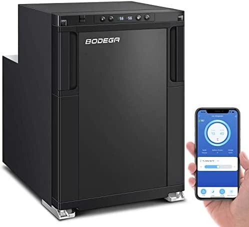 - 【PROFESSIONAL & POWERFUL COMPRESSOR】BODEGA RV Mini Refrigerator, can be a fridge(41.7L), freezer(3.3L) or both at the same time! From Refrigerate to Freeze down to –4°F using powerful compressor cooling technology. Adjust the freezing or refrigeration range of the car refrigerator from -4℉-46℉ (-20℃- 8℃) as your need. This portable refrigerator and freezer is a good choice for outdoor activity such as camping, picnic, road trips and so on. RV refrigerator surpport WIFI APP control.